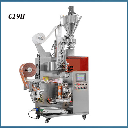 C19II Heat sealing drip coffee bag packing machine is suitable for Drip coffee bag with outer envelope, available with tea leaves, herbal tea, health care tea, coffee, roots, and other small granule products.